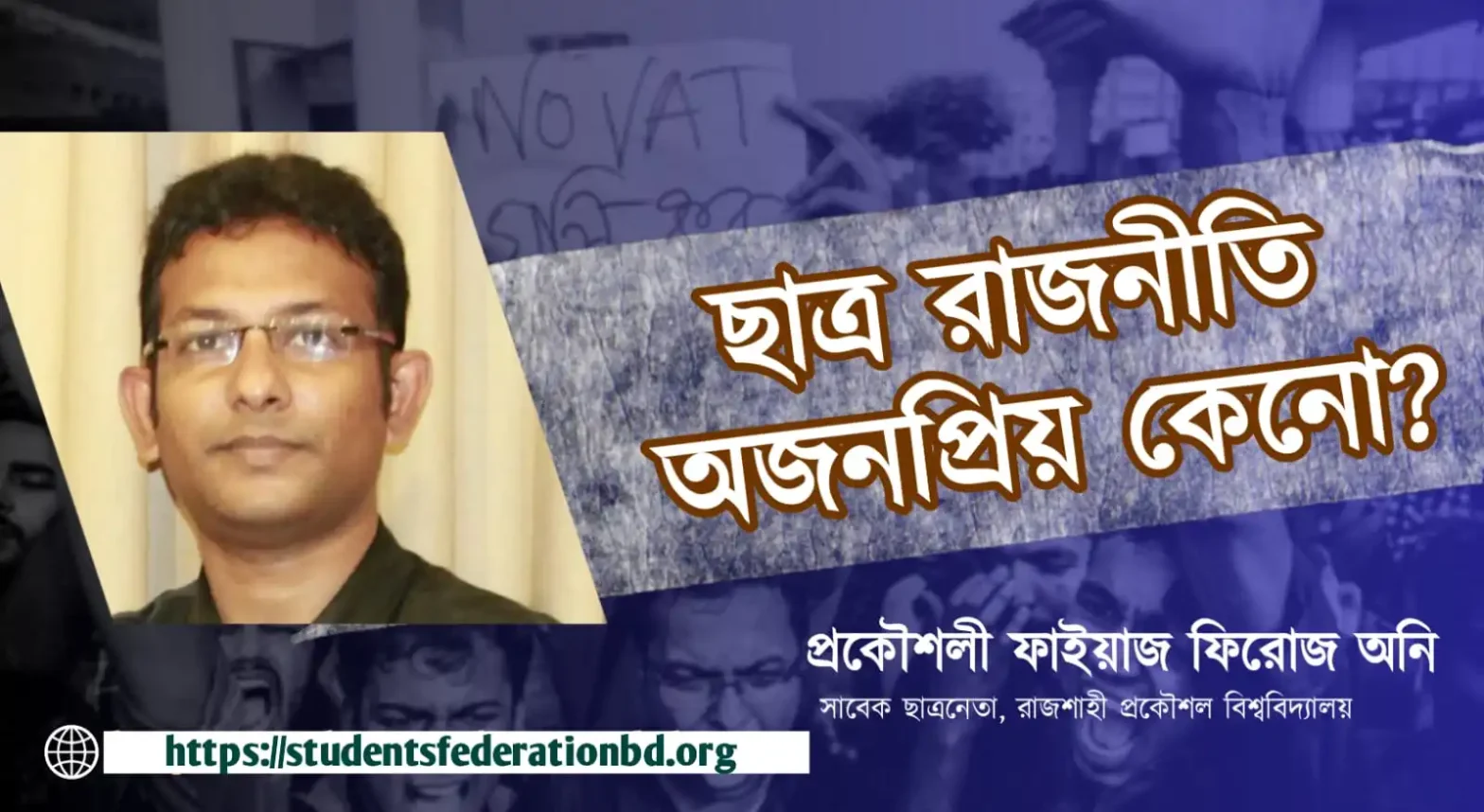 বহুবছর ধরেই ছাত্ররাজনীতি বন্ধের দাবী বেশ জনপ্রিয় হয়ে উঠেছে সিভিল সোসাইটিসহ অভিভাবকমহলে। আসলে কেন তারা এই ধরনের দাবী জানান? ভেবে দেখলাম পত্রপত্রিকায় প্রায়ই শিরোনাম হয় “ক্যাম্পাসে আধিপত্য বিস্তারকে কেন্দ্র করে দুই গ্রুপের সংঘর্ষ”। আর এই দুই গ্রুপই হয় প্রধান রাজনৈতিক দলের ছাত্র সংগঠন। আবার কেউ কেউ অভিমত দিয়ে থাকেন প্রধান রাজনৈতিক দলের লেজুড়বৃত্তি করাটাই ছাত্র রাজনীতির সমস্যা। একটু তলিয়ে দেখি কেন ক্যাম্পাসে আধিপত্য বিস্তার করা লাগে? আধিপত্য বিস্তারের ফলাফলটা কি?